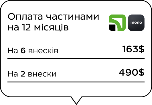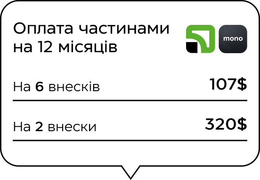 Можливість оплати частинами на 2, 6 та 12 місяців.