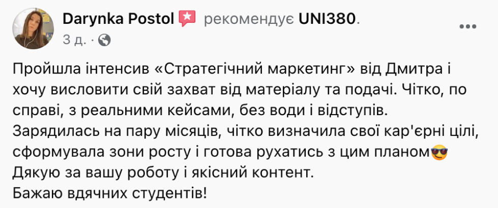 Систематизували свої знання з маркетингу і почуваєтесь впевнено. Позбулися синдрому самозванця.