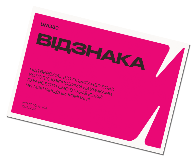 Під наглядом наставників UNI380, ви виконаєте 4 контрольні роботи, які зможете покласти в своє портфоліо: 1) спроєктуєте маркетингову воронку, 2) створите банери для реклами, 3) налаштуєте рекламу в Facebook та Instagram, 4) налаштуєте рекламу в TikTok. З таким портфоліо майбутні клієнти та роботодавці з руками відриватимуть вас у свої проєкти.